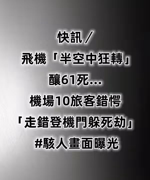 快訊/飛機「半空中狂轉」釀61死... 機場10旅客錯愕「走錯登機門躲死劫」 #駭人畫面曝光