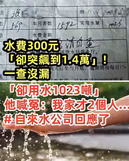 水費300元「卻突飆到1.4萬」!一查沒漏「卻用水1023噸」他喊冤:我家才2個人… # 自來水公司回應了!