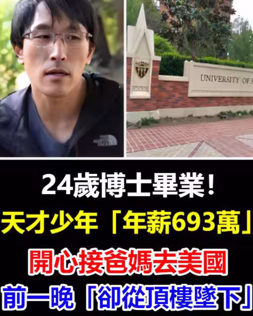 24歲博士畢業! 天才少年「年薪693萬」,開心接爸媽去美國「前一晚卻從頂樓墜下」