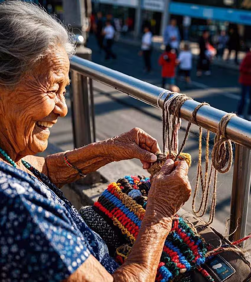 九旬奶奶坐公交去天橋賣手工!直言「不是為了賺錢,我就是喜歡」,放大後「發現一個細節」讓人淚目