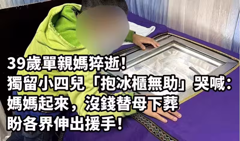 39歲單親媽猝逝!獨留小四兒「抱冰櫃無助」哭喊:媽媽起來,「沒錢替母下葬」盼各界伸出援手