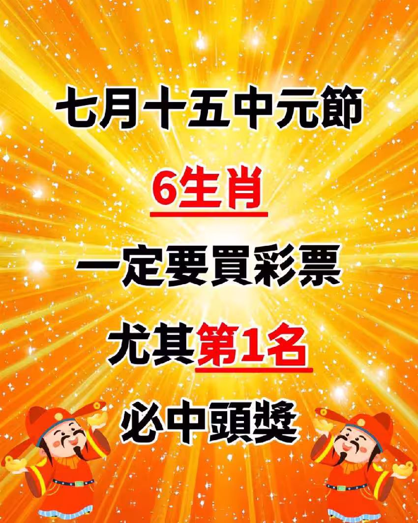 七月十五中元節,6生肖一定要買彩票,尤其是第1名必中頭獎