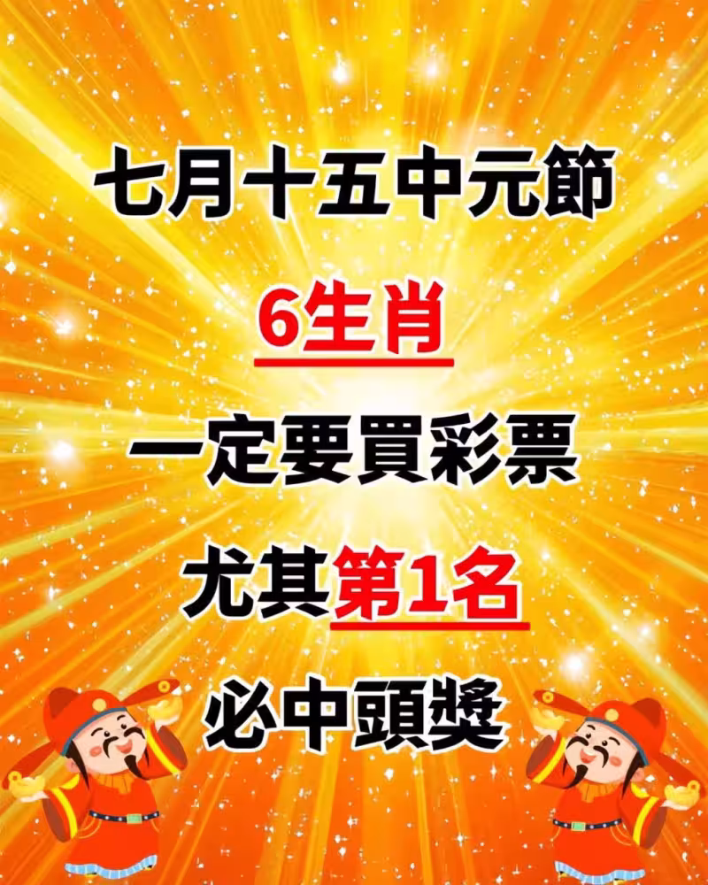 七月十五中元節,6生肖一定要買彩票,尤其是第1名必中頭獎。
