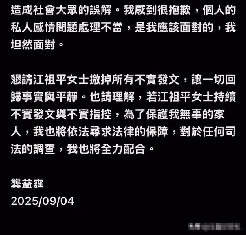 現如今龔家父子蠻力撤下最後一絲遮羞布,江祖平似乎也就沒什麼可後退的了,於是龔家父子分別發聲後江祖平也上線回應。