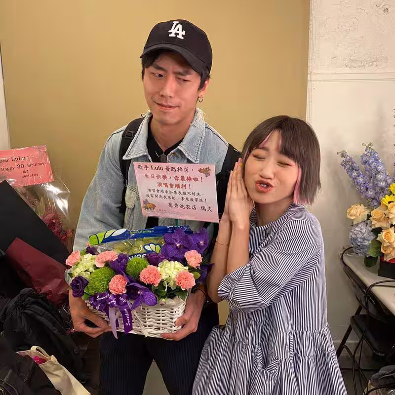 從兩人曝光的照片中可見,Lulu身穿白色蕾絲紗裙,搭配牛仔背心,頭上點綴珍珠頭箍,充滿俏皮氣息;陳漢典則穿著白襯衫與牛仔褲,與她一同坐在樓梯間,兩人不時對視大笑、搞怪比手勢,畫面宛如青春偶像劇般甜蜜自然。
