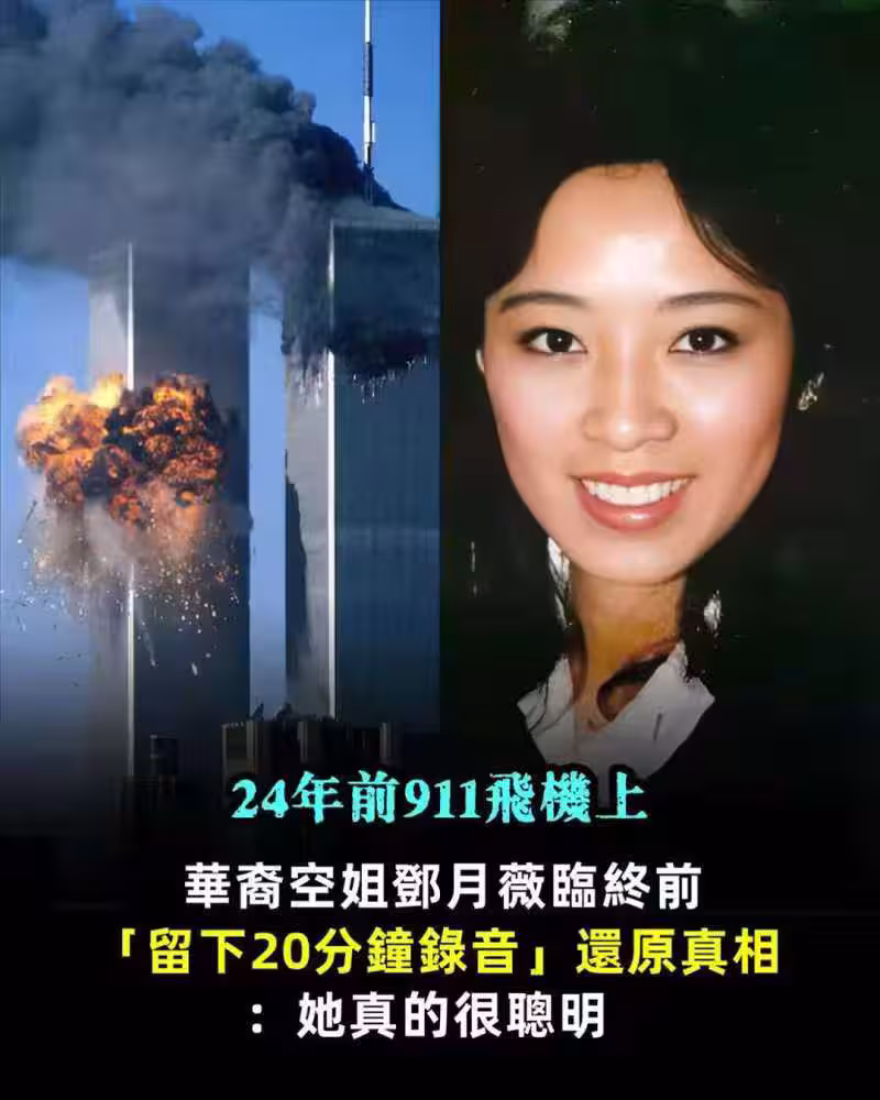 24年前911飛機上,華裔空姐鄧月薇臨終前「留下20分鐘錄音」還原真相:她真的很聰明.