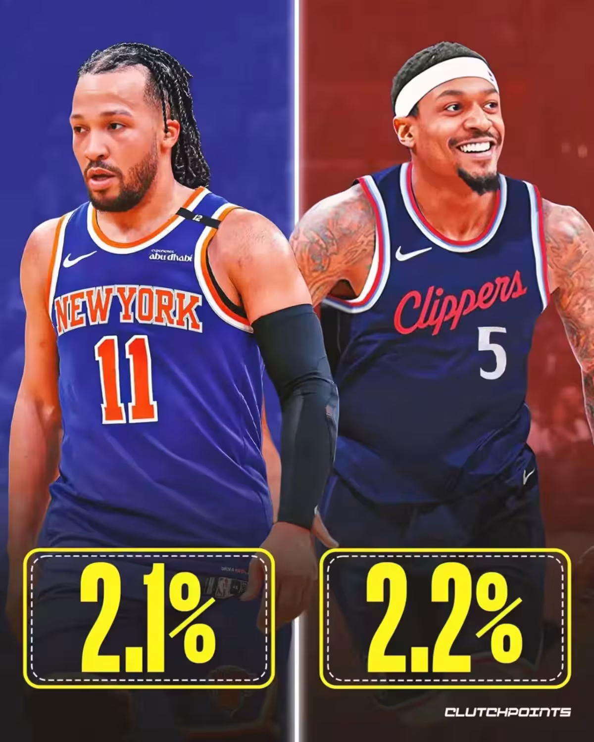 布倫森被認為入選名人他的機率是2.1%,雖然布倫森在過去兩年成為了紐約之王,但是積累的榮譽和數據還是太少了,他不被看好也是情理之中,不過隨著職業生涯的深入,他會越來越出色的。比爾的機率是2.2%,比爾雖然多次入選過全明星,巔峰時期還是聯盟頂級得分手,但是帶隊戰績太爛了,不受認可也是正常。