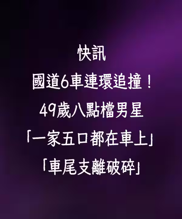 快訊/國道6車連環追撞!49歲八點檔男星「一家五口都在車上」「車尾支離破碎」驚險過程曝