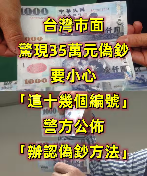 台灣市面驚現35萬元偽鈔,要小心「這十幾個編號」!警方公布「辦認偽鈔方法!」