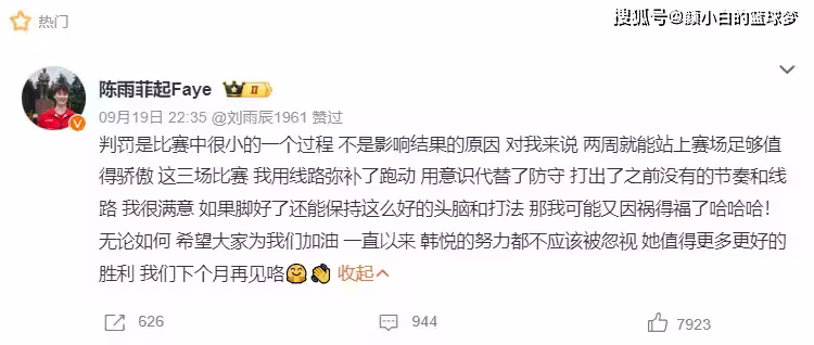 其實陳雨菲出局後看到輿論一股腦的朝著韓悅發炮,她一早就為韓悅辯解:韓悅的努力不該被忽視,她值得更多更好的勝利,這一站能站在賽場就值得驕傲了,判罰是比賽中很小的一個過程,不是影響結果的原因。