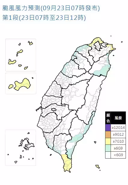 針對降雨情況,高雄市山區、屏東縣山區、花蓮縣平地山區,以及台東縣平地山區等地區,預測雨量已達停班課標準。