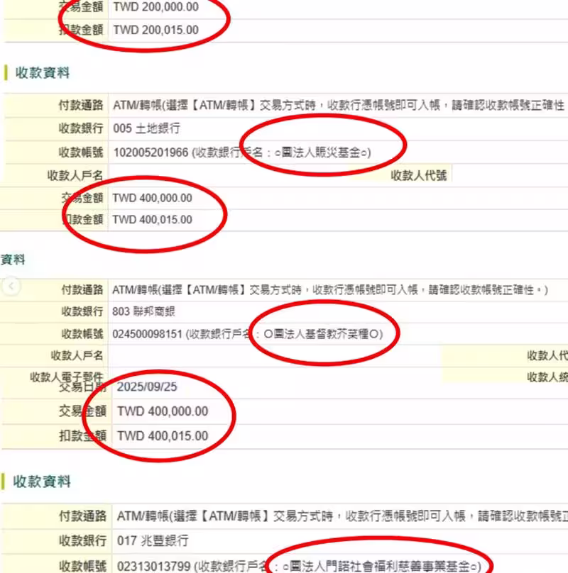 天后板妹也捐款,「擔心只捐款給單一機構未必能將資源落實到位,所以將金額分散捐給三個不同的機構,希望能讓這份愛心更確實地發揮作用。」曬出的捐款單據合計為100萬元。