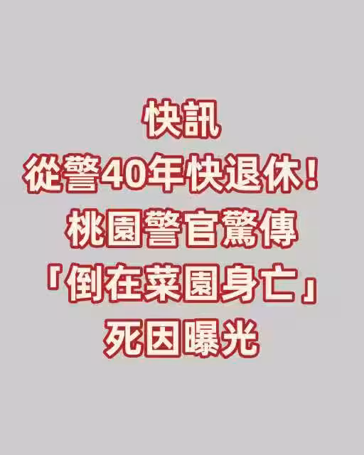 快訊/從警40年快退休!桃園警官驚傳「倒在菜園身亡」死因曝光!