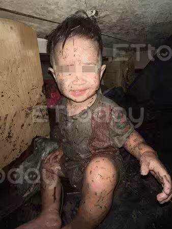不過該說是幸運嗎?就差那麼一點點,就會讓母子四人全滅頂的大水,後來也慢慢退下,但仍有成人高,她也提供當時她仍用手機紀錄下大水暫退時的照片,三個孩子臉上、頭髮全身都是灰色淤泥,瑟縮躲在衣櫃里的,一臉驚恐的神情,照片讓人看了心疼不已。