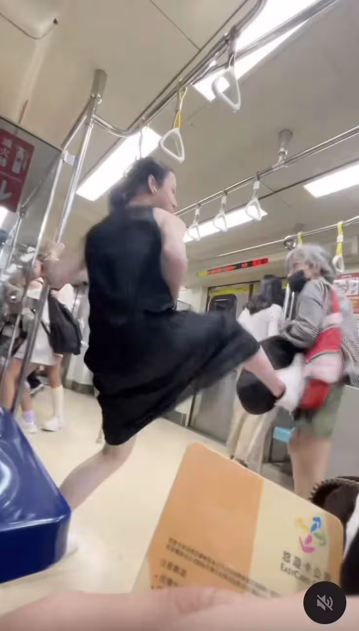 民眾拍下影片,捷運車廂內還有普通座位及一個博愛座,但手提大包小包的老婦卻堅持要坐在靠壓克力板的一側,她更用手中的提袋甩向坐在博愛座的民眾,只見民眾不疾不徐把手中的提袋交給旁邊乘客,便在老婦再度揮擊之時,起身往前狠踹阿嬤。