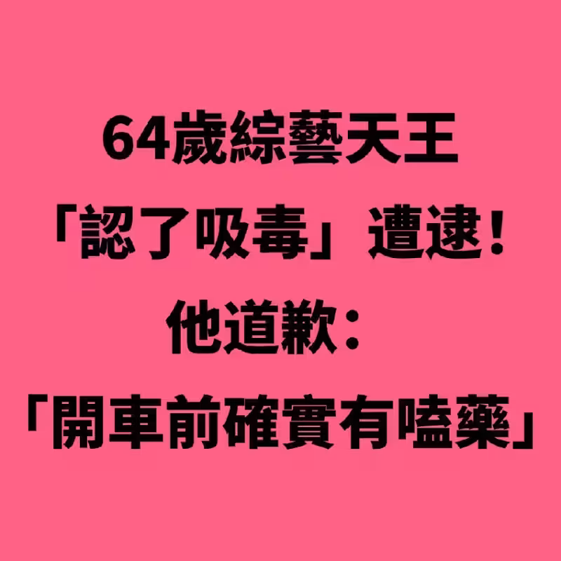 64歲綜藝天王「認了吸毒」遭逮!他道歉:「開車前確實有嗑藥...」