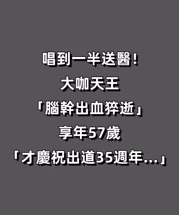 唱到一半送醫!大咖天王「腦幹出血猝逝」享年57歲, 「才慶祝出道35周年…」