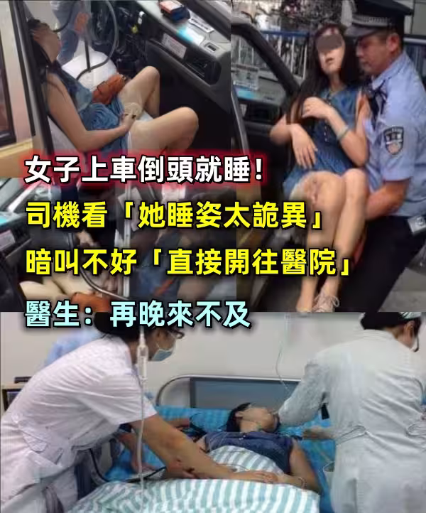 女子上車倒頭就睡!!司機見「她睡姿太詭異」暗叫不好「直接開往醫院」醫生:再晚就來不及了