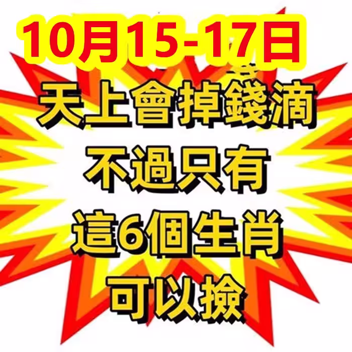 10月15~17日天上會掉錢滴 ,不過只有這6個生肖可以撿