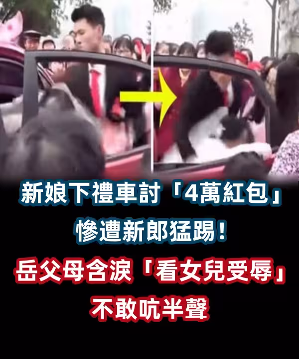 新娘下禮車討「4萬紅包」慘遭新郎猛踢!岳父母含淚「看著女兒受辱」不敢吭半聲