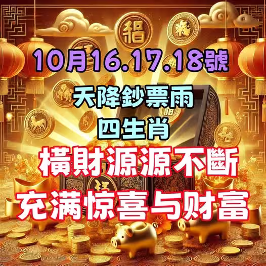 10月16.17.18號天降鈔票雨,四生肖橫財源源不斷,充滿驚喜與財富!
