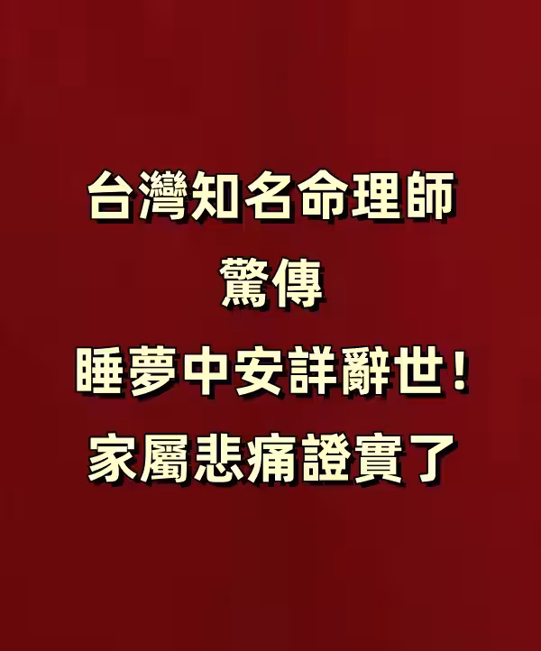 突發/台灣知名命理師驚傳睡夢中安詳辭世!家屬悲痛證實了!