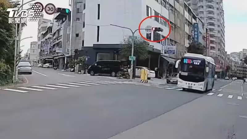 買蔥肉餅險遭撞飛! 公車闖紅燈還叭人 去年也曾撞倒騎士