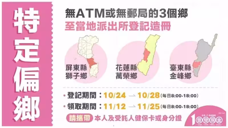若民眾希望領取現金,陳柏誠指出,ATM領現11月17日開放、郵局臨櫃領現則在11月24日起跑。