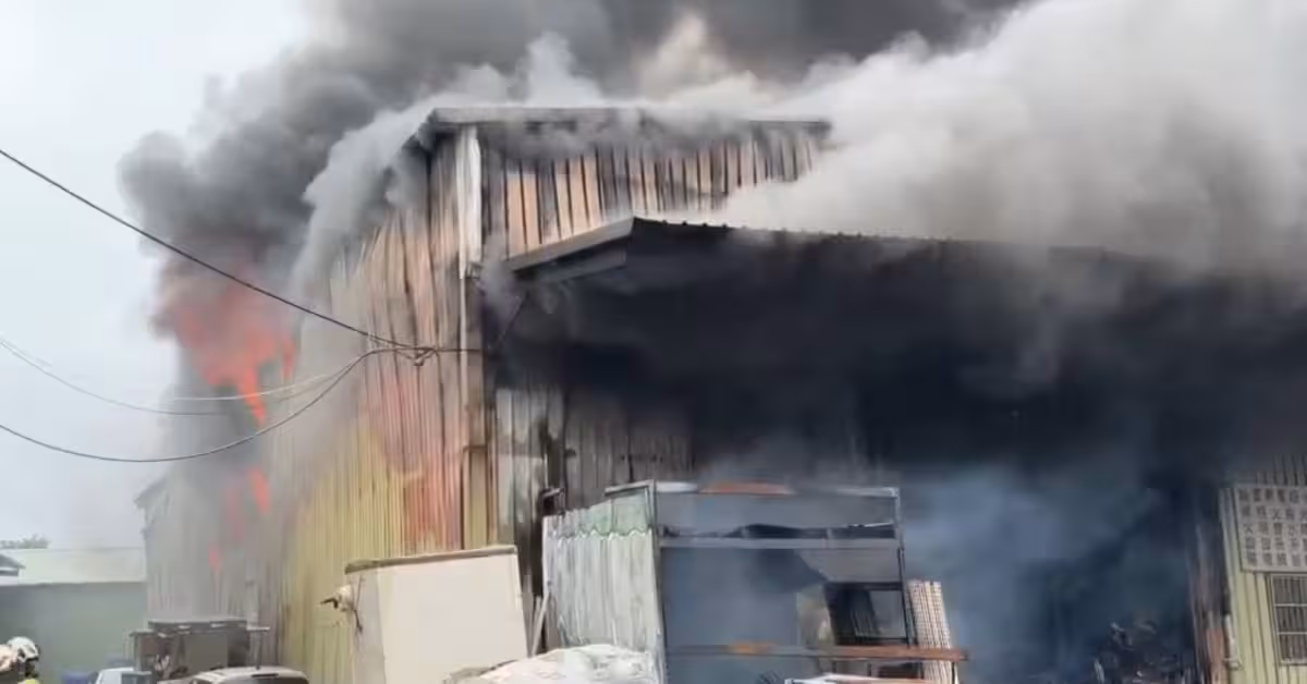 桃園一處鐵皮倉庫,今日早上不明原因起火燃燒,近百坪面積倉庫付之一炬。根據了解,這裡是電商公司的倉庫,專賣生活用品,60多歲老闆夫妻檔稍早尋獲,已明顯死亡。距離100米遠的護理之家,受到濃煙影響,103位長輩和照護人員通通緊急撤到別處機構安置。