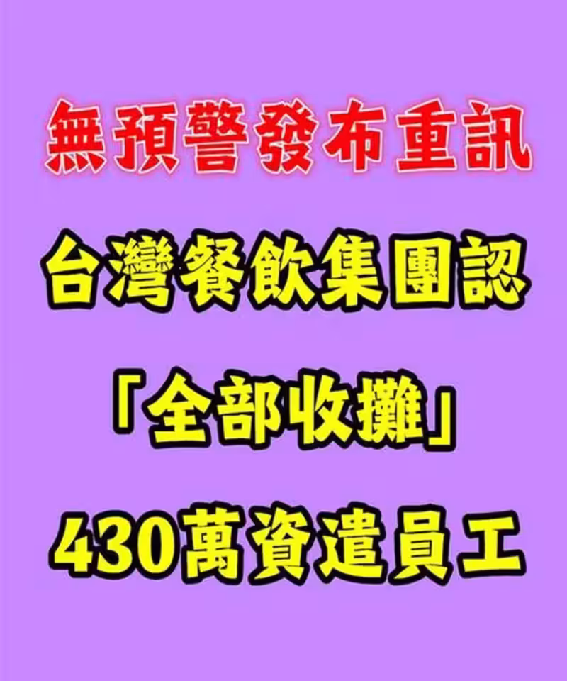 台灣餐飲集團重訊認了「全面收攤」!員工資遣費達430萬 下一步曝光