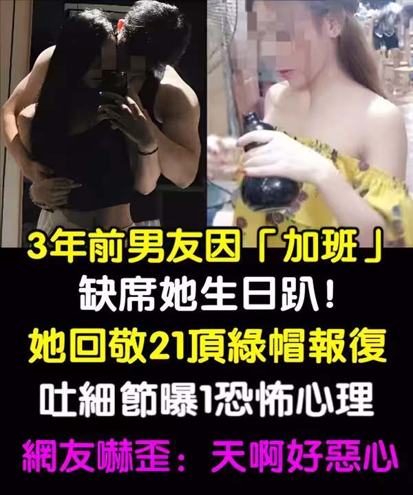 三年前男友「加班」缺席生日趴!她回敬「21頂綠帽報復」吐細節曝一恐怖心理,網友嚇歪:天啊好噁心