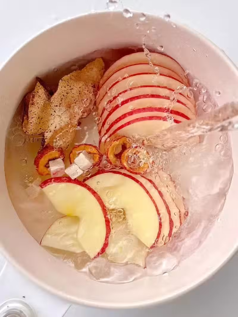 由於我不停地吃「蒸蘋果水」,導致臉蛋越來越紅潤透亮