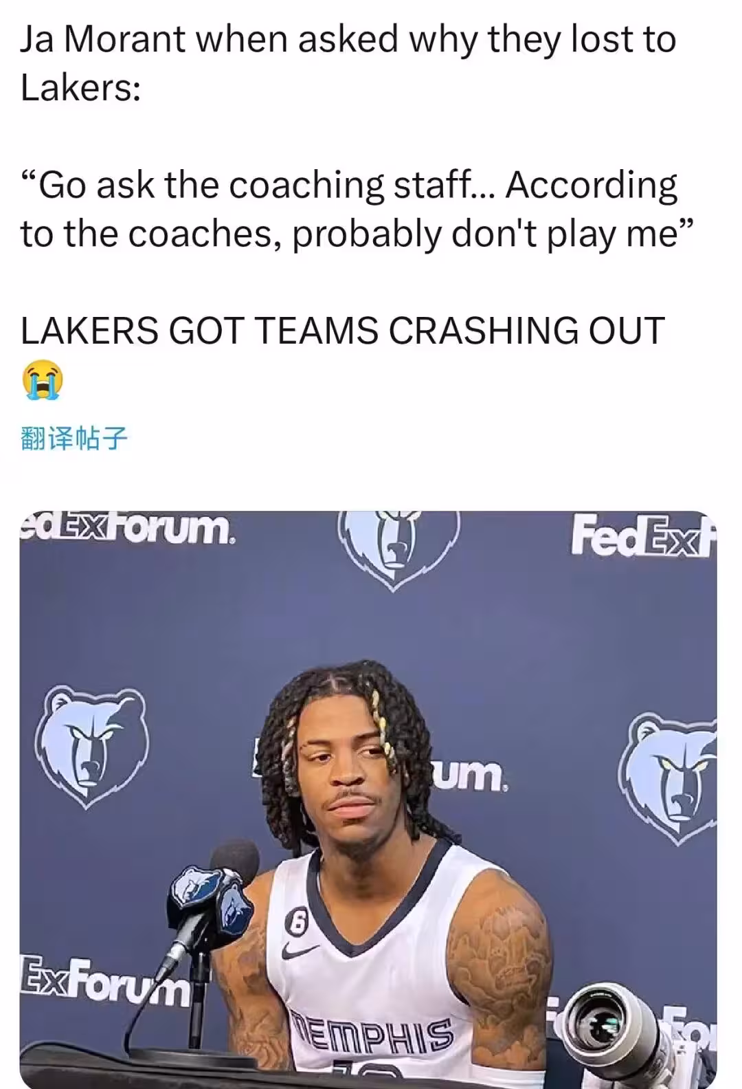 本賽季至今,灰熊3勝3負,期間莫蘭特場均出戰28.5分鐘,貢獻20.8分3.3板6.7助2.5失誤1斷,三項命中率40.6%、15.6%和97.1%,這哥們距離被寄予厚望的樣子已經越來越遠,近些年關於灰熊有可能將他交易的傳聞更是不絕於耳。