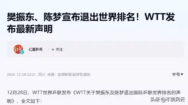 她和樊振東一起退排名,本是為老將爭取喘息空間,可換來的不是理解,是鋪天蓋地的謠言。