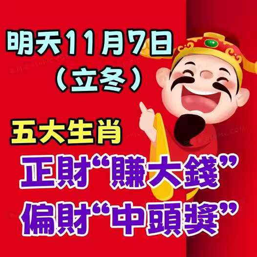 明天11月7日(立冬)五大生肖正財「賺大錢」偏財「中頭獎!」