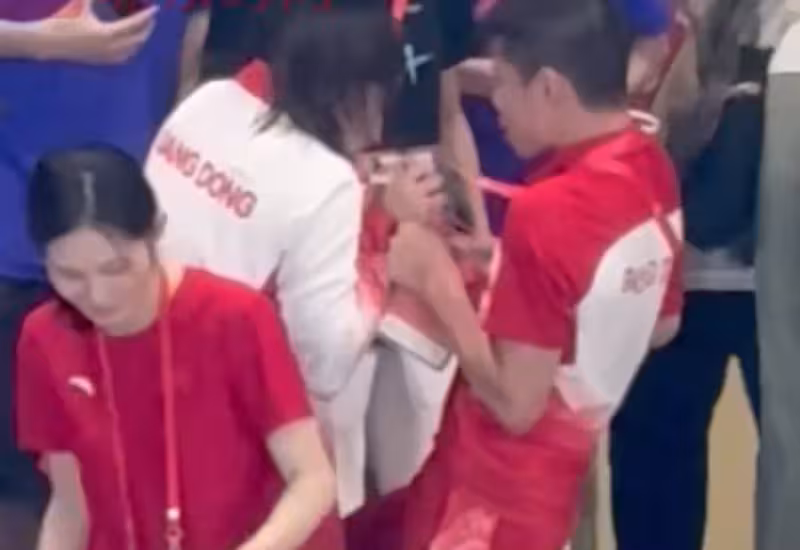 在看台上,全紅嬋耐心地給觀眾和工作人員簽名。簽完名後,她看到有一位師弟正好站在她的前面。全紅嬋上前一把搶過這位師弟脖子上掛著的入場卡,並在卡上「強行」簽下自己的大名,場面喜感十足。