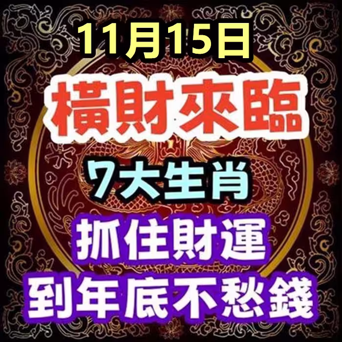 11月15日橫財來臨,7大生肖抓住財運,到年底不愁錢!