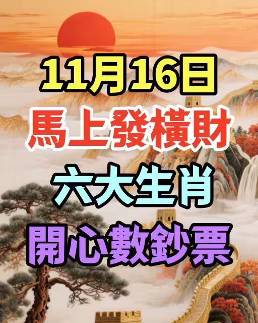 11月16日馬上發橫財,六大生肖開心數鈔票.....