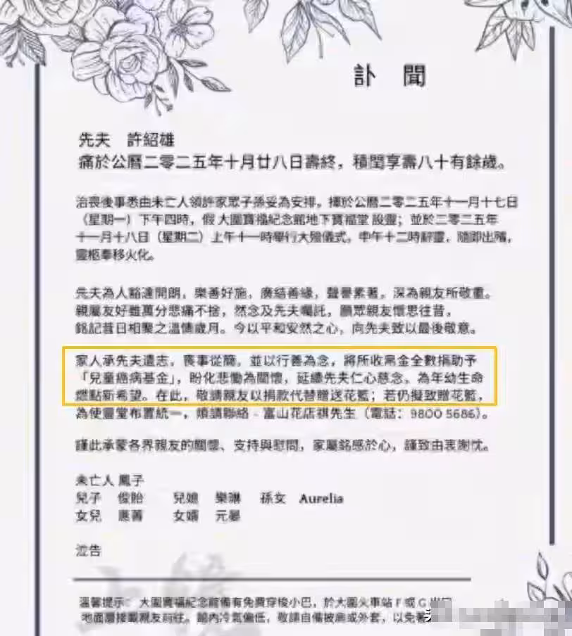 雨落香港!許紹雄追悼會藏3個淚點,成龍花圈太特別,眾星哀悼