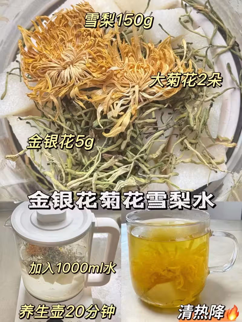 麥冬百合雪梨水:梨 150g+百合 10g+麥冬 8g+紅棗 5 顆+水 1000ml
