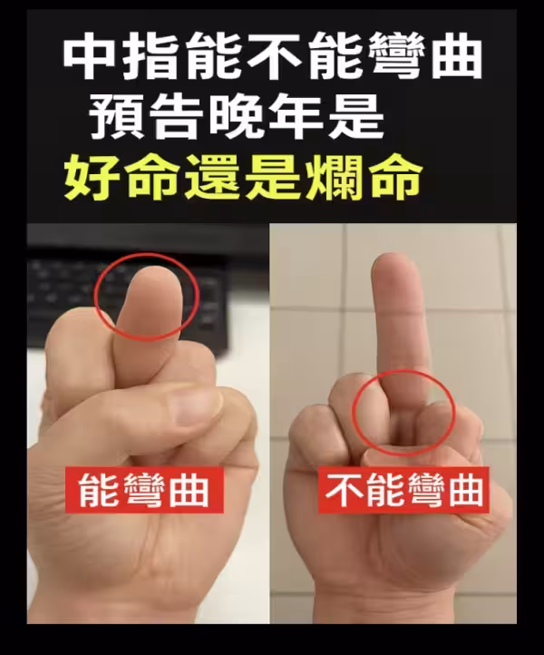 中指能不能彎曲,預告晚年是「好命還是爛命」:太准了