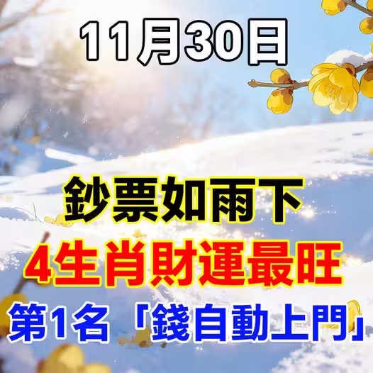 鈔票如雨下!11月30日,4生肖財運最旺,第1名「錢自動上門」!
