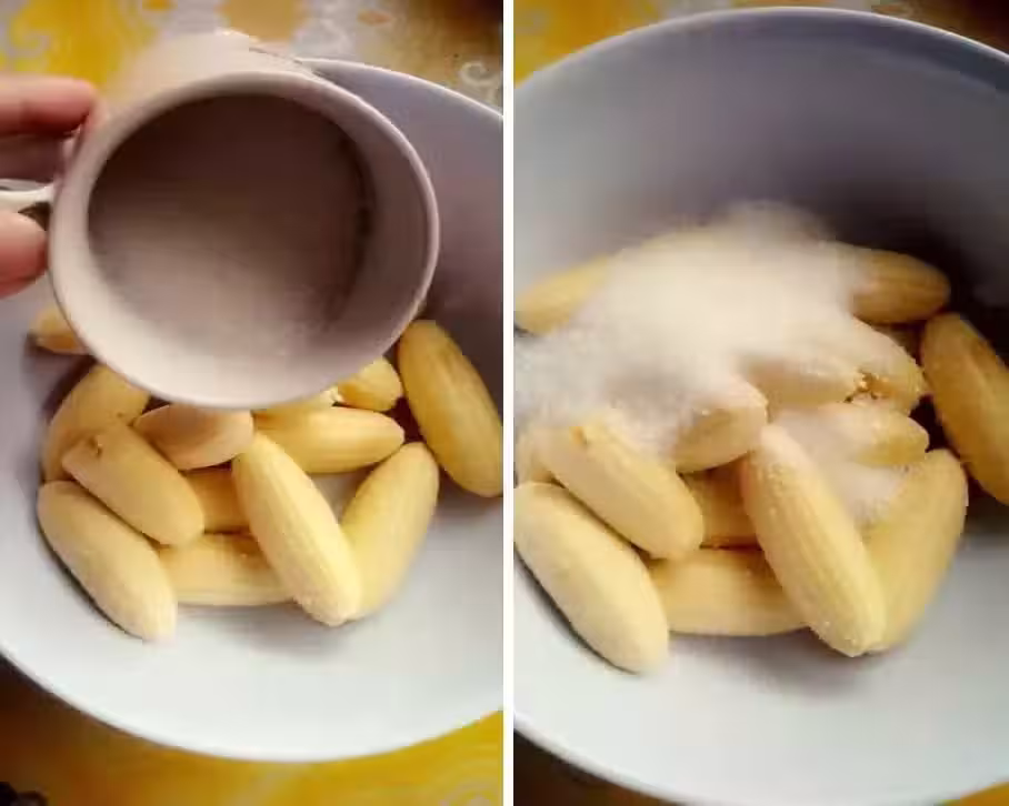 3. 用杯底或勺子把香蕉和白糖壓勻,攪拌均勻。