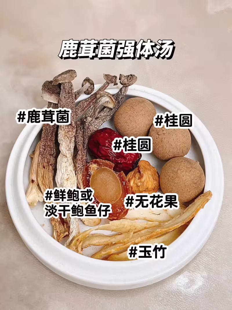 ✅ 食材:鹿茸菌、桂圓、紅棗、無花果、玉竹、鮮鮑/淡干鮑魚仔