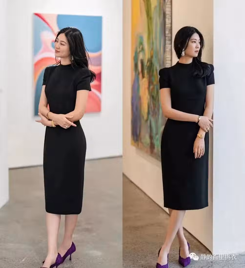 小黑裙一直是比較經典的著裝,但也或多或少地擺脫不了沉悶的味道,因此造型中必須要保留露膚面積,避免裹得太嚴實,從而將沉悶感放大。