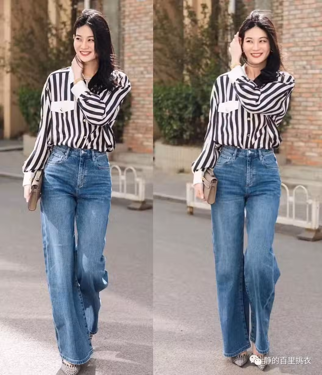 一年四季都很有人氣的襯衫,不一定只能局限於單色設計中,只要設計元素經典不花哨,那麼創造出的時尚魅力也不容小瞧。黑白條紋的襯衫,就能憑藉視覺上構造出的撞色感,使女性外形保持著比較突出的氣質魅力。