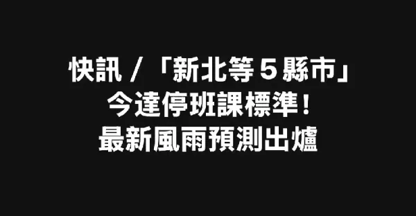 快訊/「新北等5縣市」今達停班課標準!最新風雨預測出爐