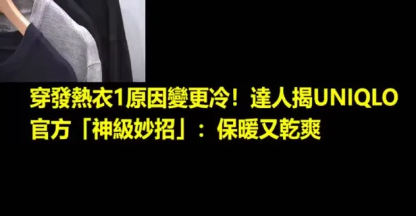 穿發熱衣1原因變更冷!達人揭UNIQLO官方「神級妙招」:保暖又乾爽
