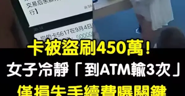 卡被盜刷450萬!!女子非常冷靜「跑ATM輸3次」只損失手續費,她曝關鍵「電話千萬不能接」成功挽救全追回