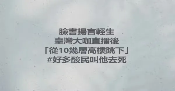 臉書揚言輕.生!台灣大咖直播後「從10幾層高.樓.跳.下」當場身亡.... #好多酸民叫他去.死